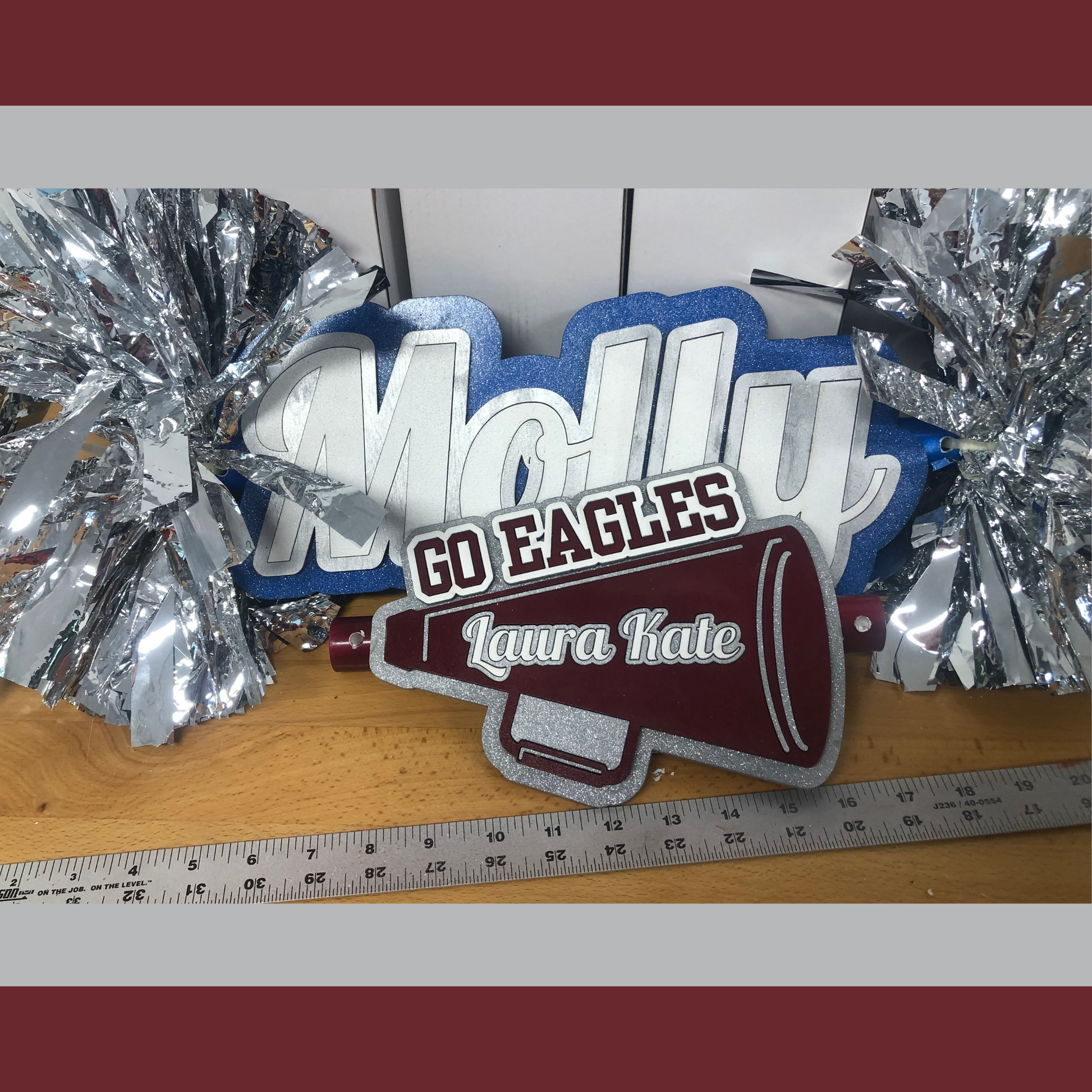 Specially designed for the littlest cheer fans, the Custom Mini Megaphone Pom Pom Spirit Stick is a great way to keep your little ones busy in the stand, cheering on their favorite athlete. Bring the energy, show your pride, and cheer loud with our custom laser-cut cheer sign!