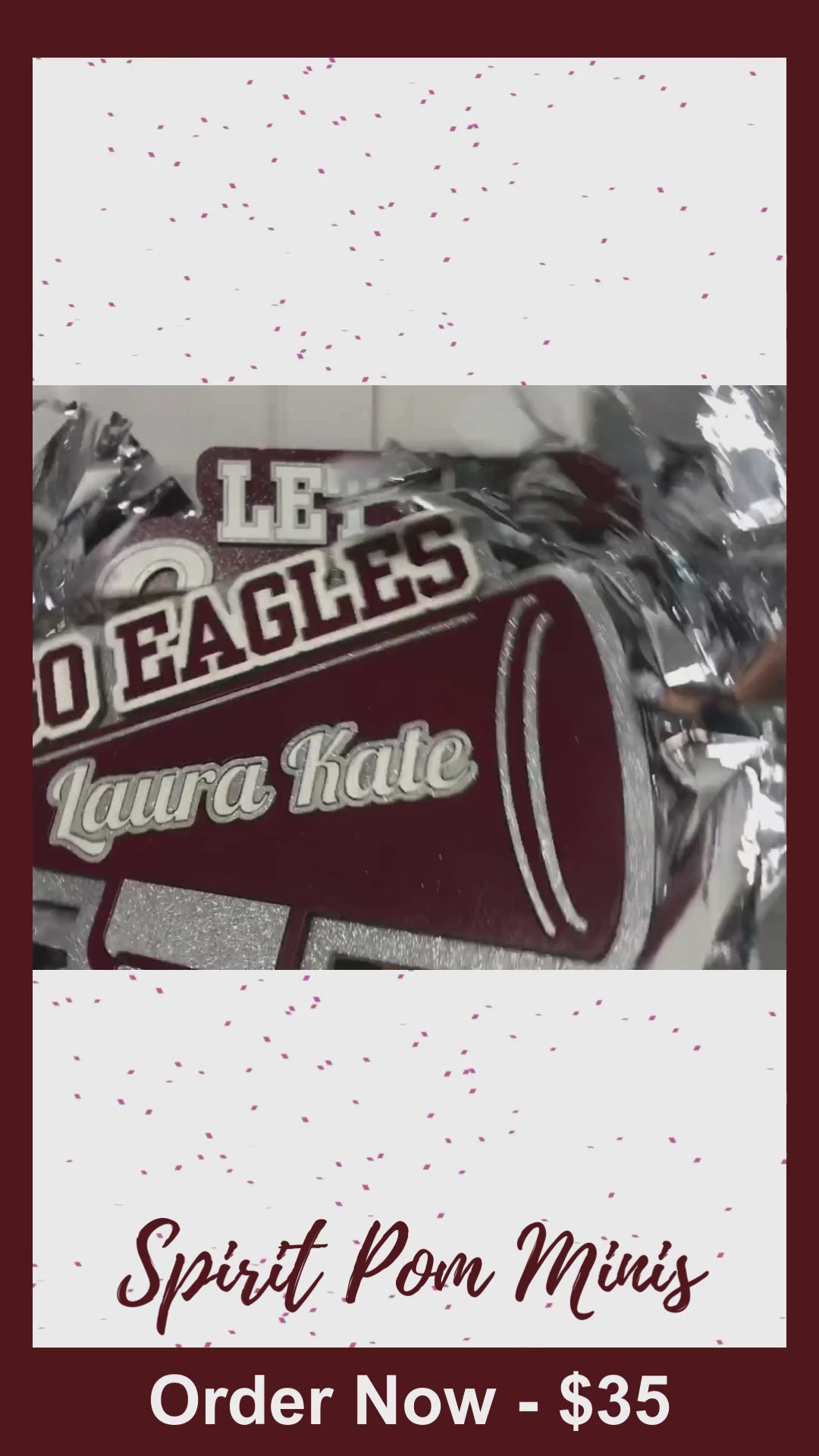 This 8-inch personalized wooden cheer sign is the ultimate spirit accessory. Total length of the sigh with pom poms attached is approximately 20 inches. Crafted from high-quality wood and painted to your custom colors, each sign features real pom poms on both ends and a sturdy handle for shaking—just like the pros on the sideline.